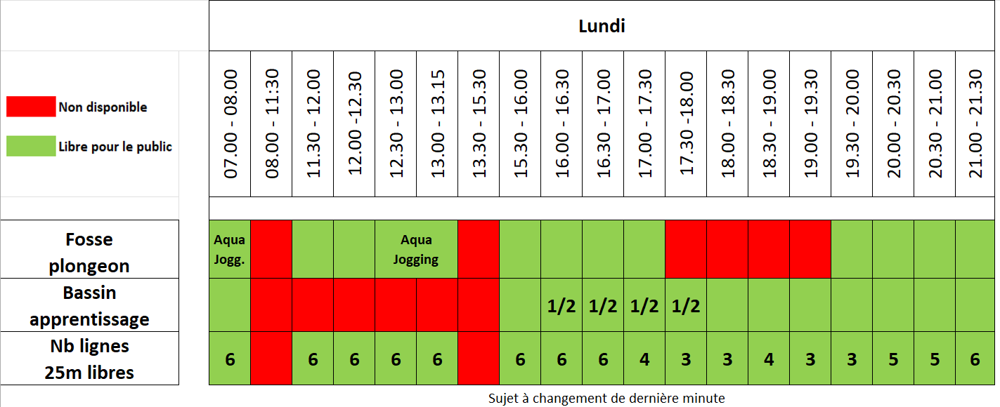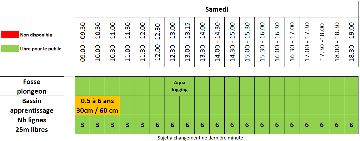 En horaire 10h-19h, il n’y a en principe pas de réservations et les bassins /lignes d’eau sont accessibles.