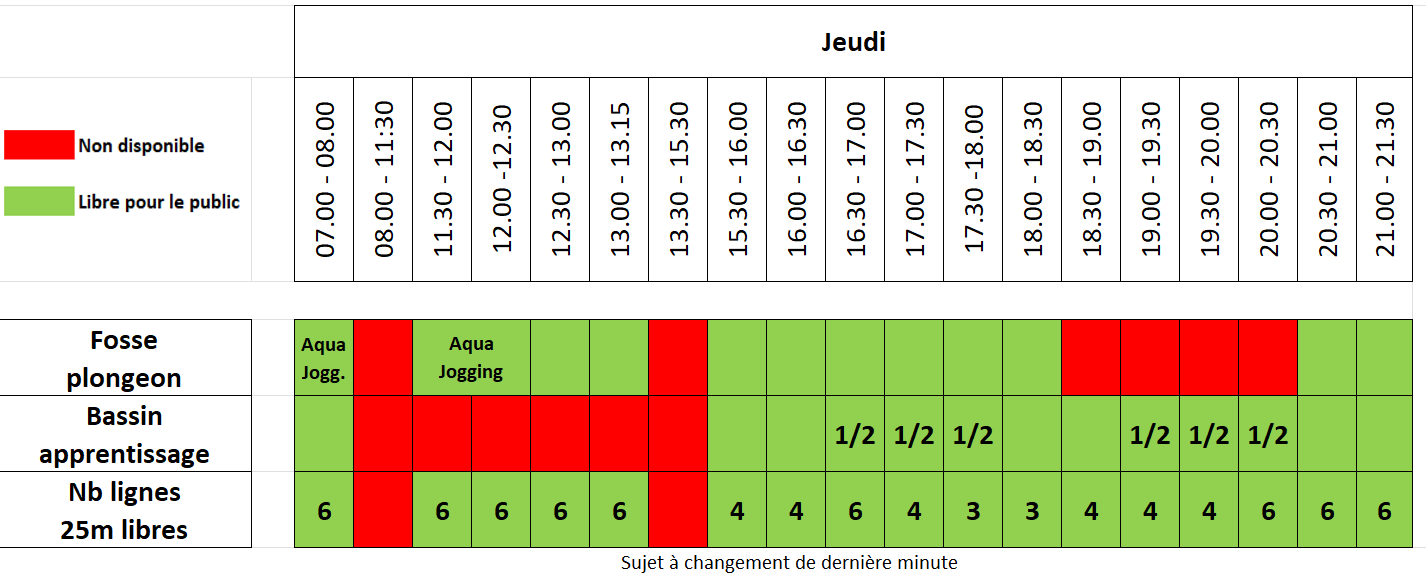 | Donnerstag | 07:00 - 08:00, 11:30 - 13:15, 15:30 - 21:30 |